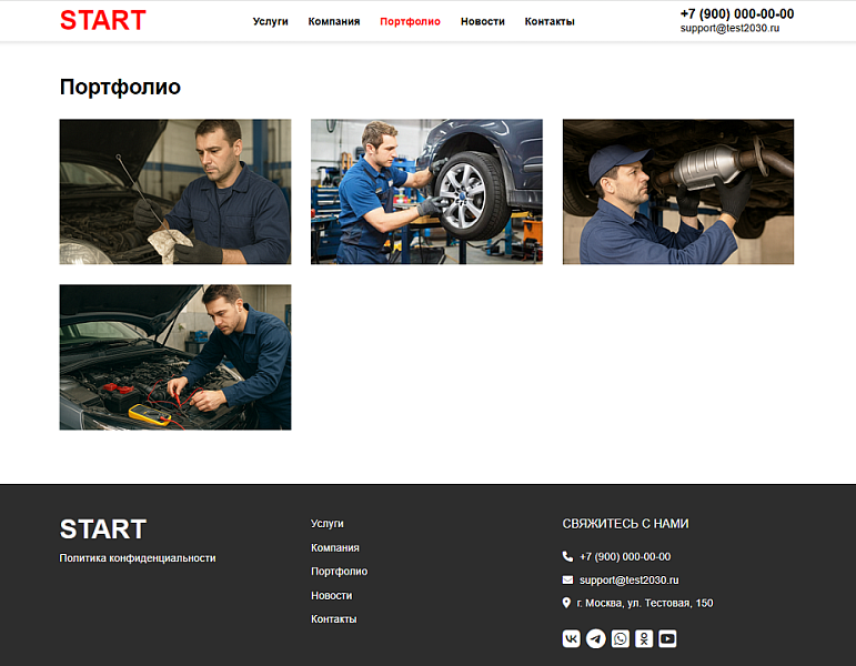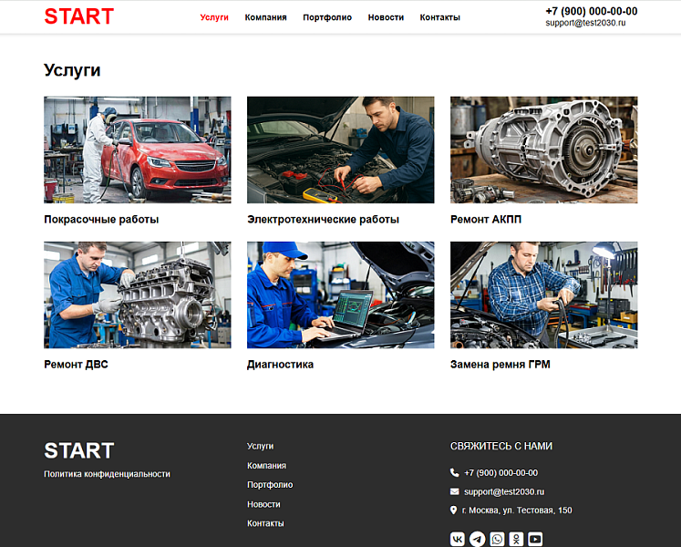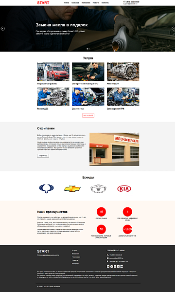 Решение, созданное для быстрого запуска сайта для автомастерской, автосервиса, шиномонтажа или автомойки. Адаптивная верстка, легкий дизайн.
