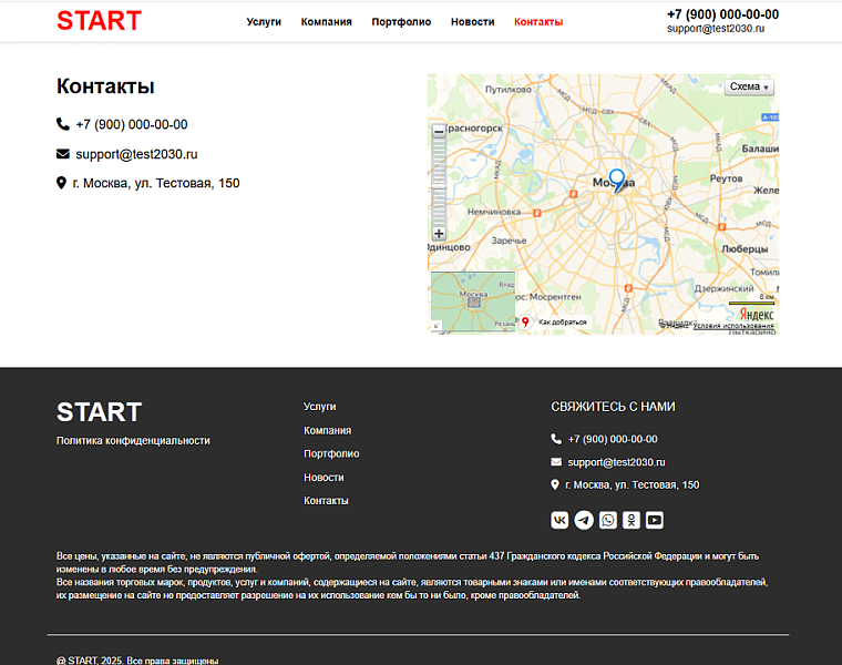 - страница контакты с картой