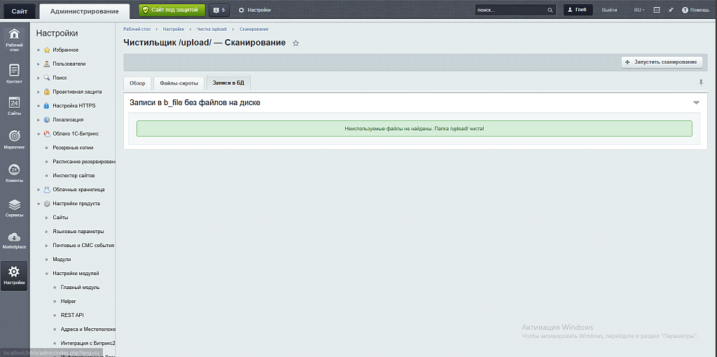 - Умный поиск: Находит «сиротские» файлы, которые не привязаны к инфоблокам, модулям или письмам.