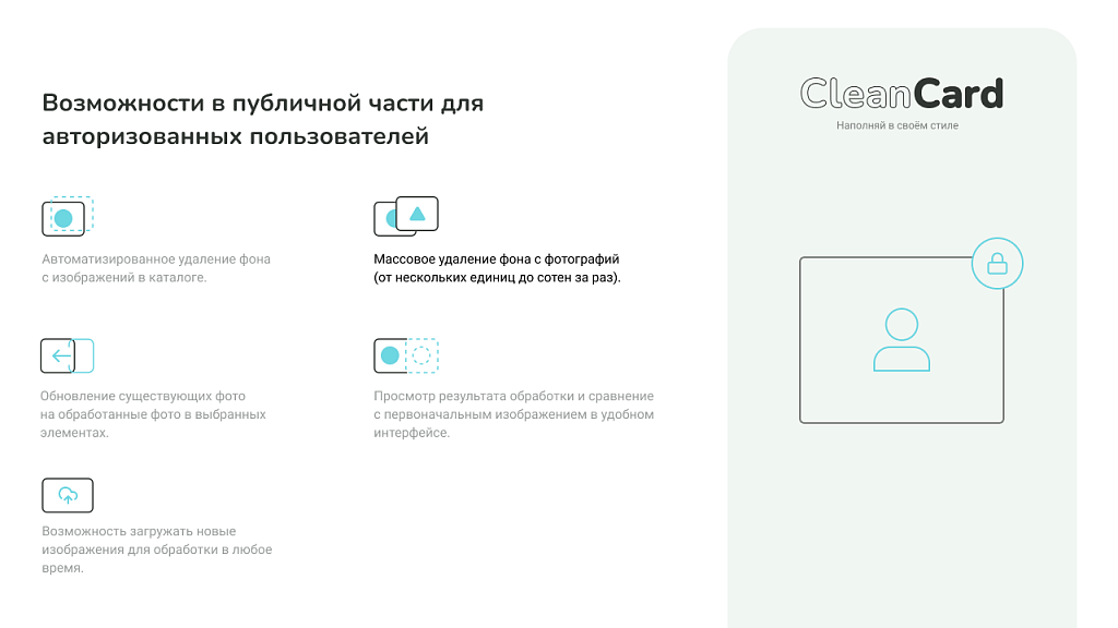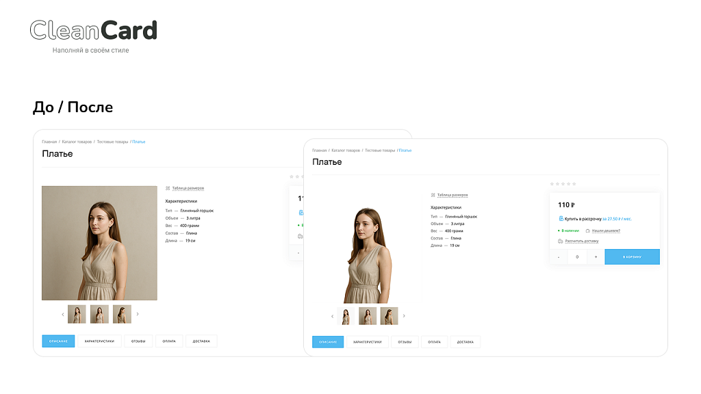 Модуль CleanCard предназначен для автоматизированного удаления фона с изображений товаров в интернет-магазинах. Решение позволяет быстро и массово обрабатывать фотографии каталога, подготавливая их для публикации без необходимости ручной ретуши.
