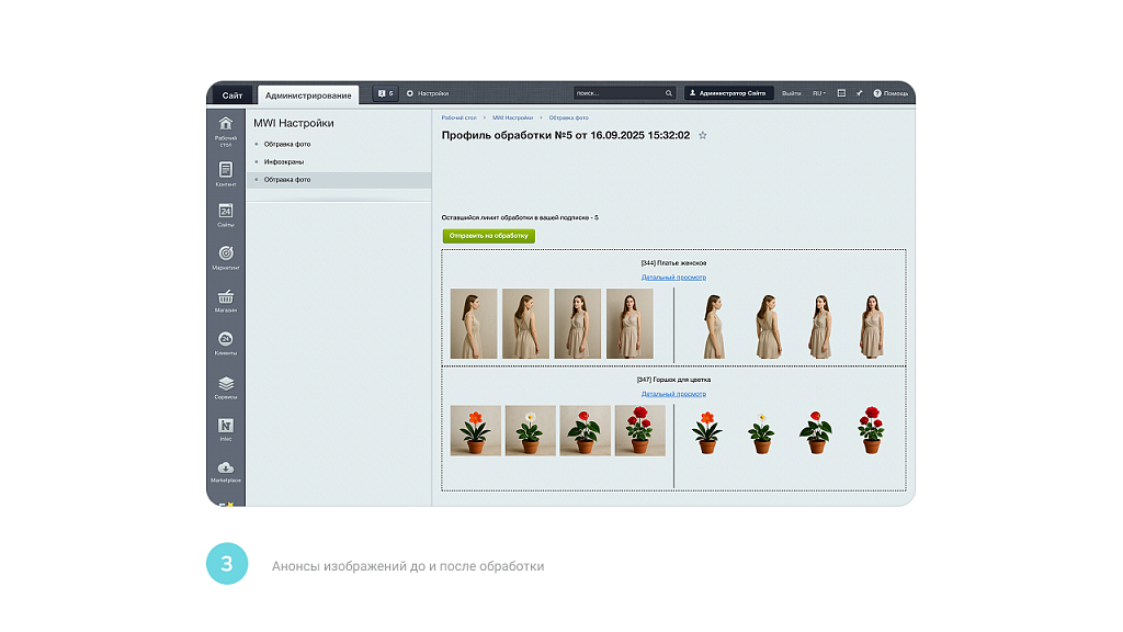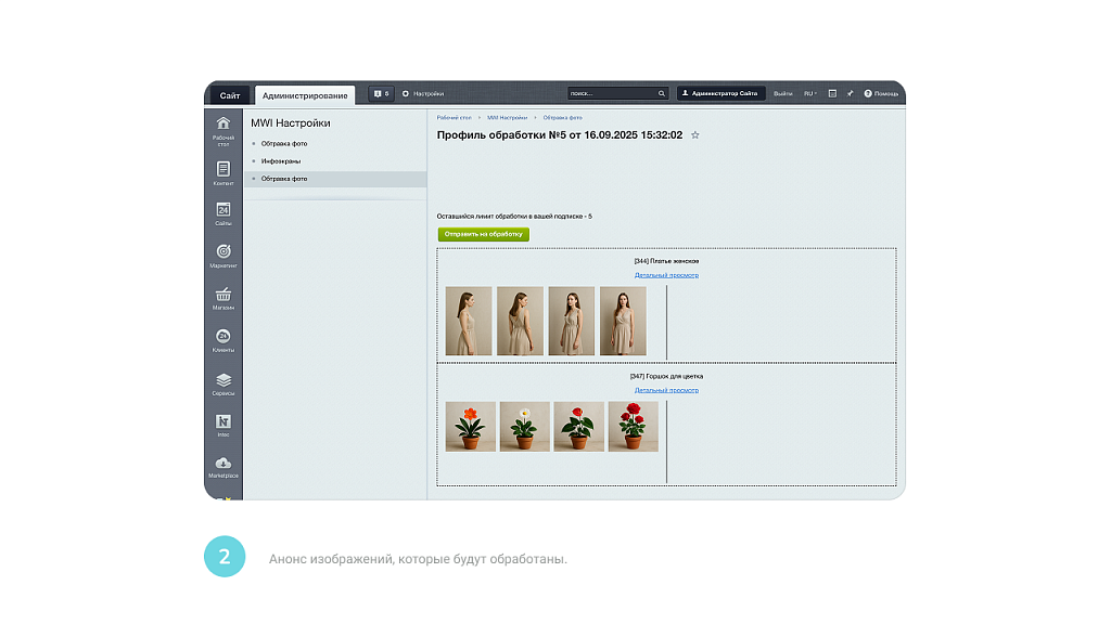 Для обработки фото через модуль необходимо дополнительно покупать «кредиты»