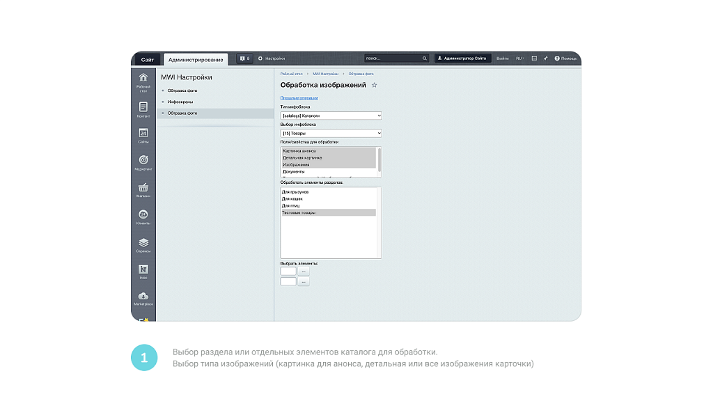 Возможность выбора полей/свойств из которых нужно обработать фото;