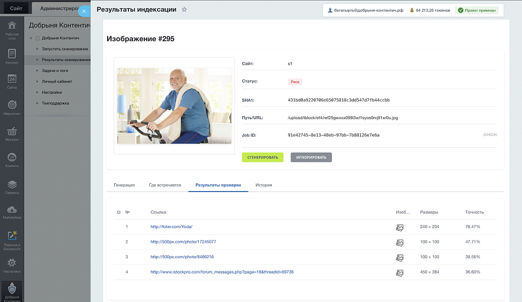 Проверяет их на причастность к фотостокам