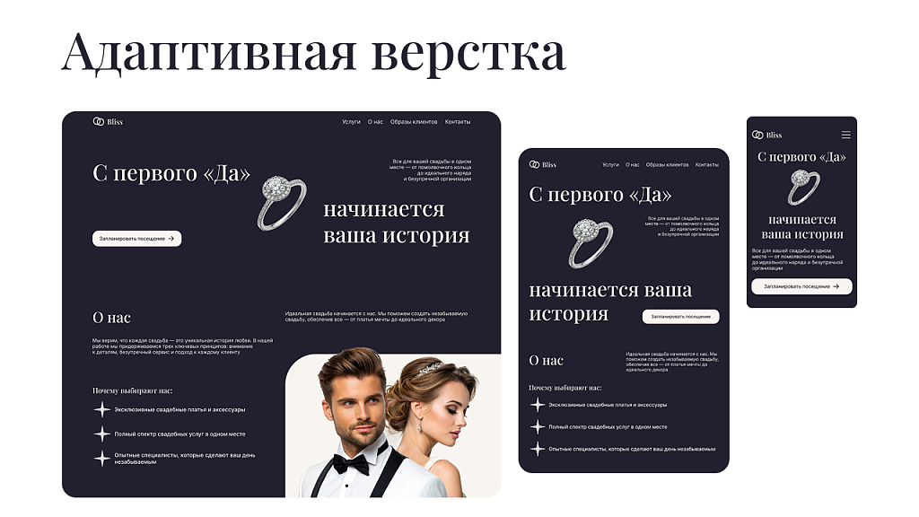 адаптивная верстка для десктопов, планшетов и мобильных телефонов