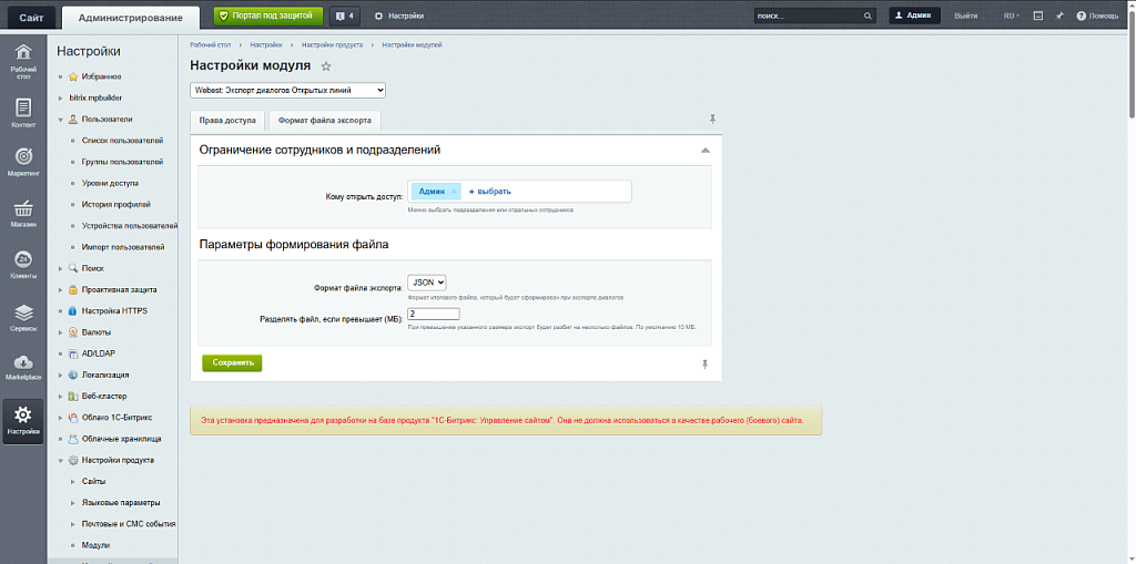 Нативное решение для коробочной версии Битрикс24, позволяющее экспортировать диалоги Открытых линий прямо из интерфейса модуля Контакт-центр без изменения привычного сценария работы сотрудников.