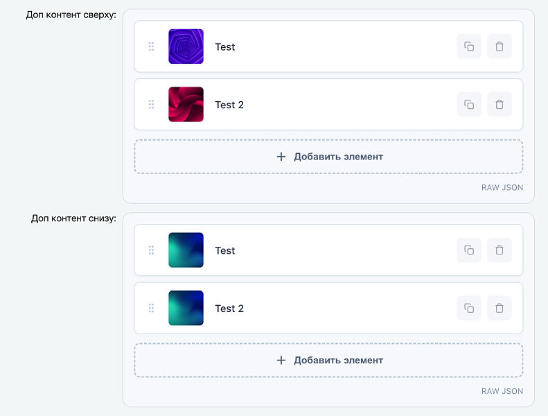 Кроме того, в модуле предусмотрен режим "Редактировать JSON" (editRawJson), который позволяет разработчику скопировать структуру данных целиком и перенести её на другой элемент или проект.