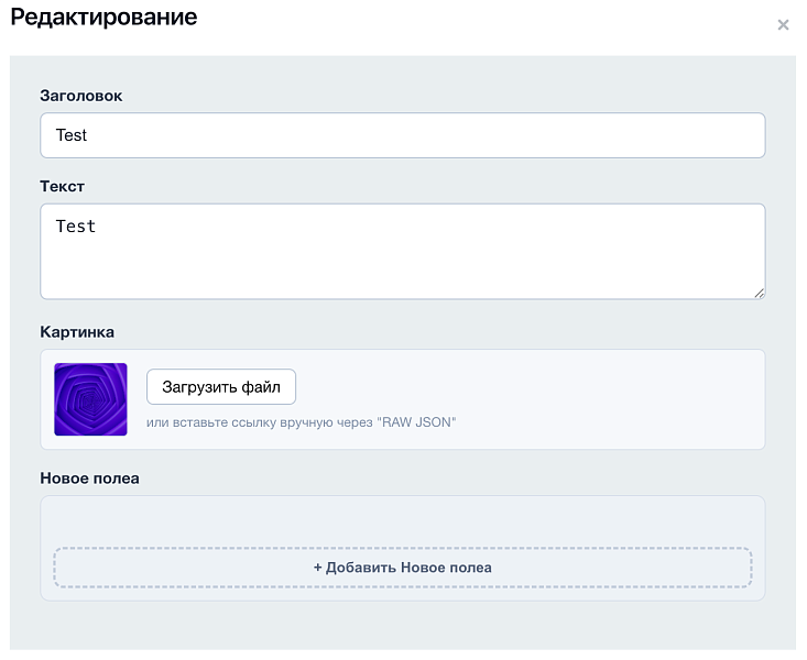 Модуль рендерит удобный интерфейс в карточке элемента. Это не просто текстовое поле с JSON. Это полноценная панель управления контентом, которая включает: