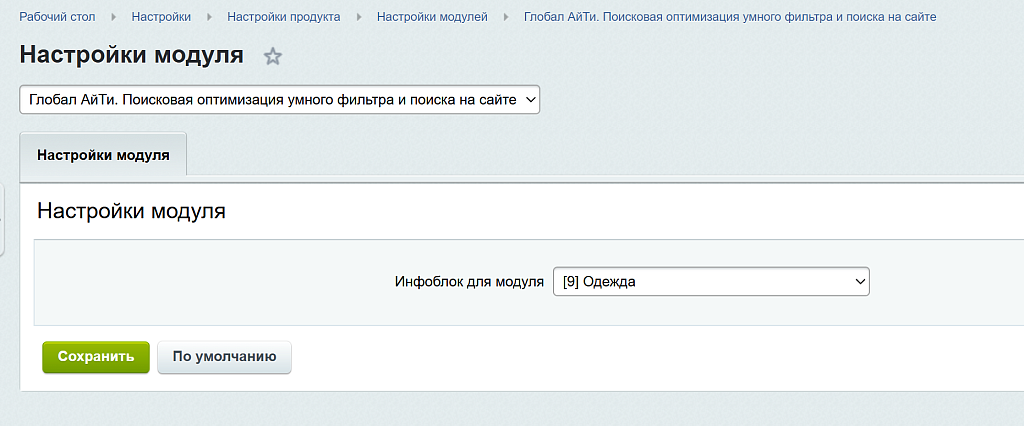 Глобал АйТи. Поисковая оптимизация умного фильтра и поиска на сайте — модуль для 1С-Битрикс, который позволяет задавать индивидуальные заголовки, описания и метаданные для страниц умного фильтра и результатов поиска, используя стандартные разделы каталога.
