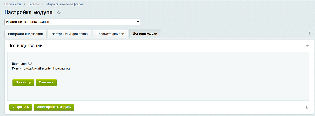 Управление параметрами индексации: В настройках модуля можно задать ограничения на максимальный размер обрабатываемого файла и на количество извлекаемых символов, чтобы контролировать нагрузку на сервер.