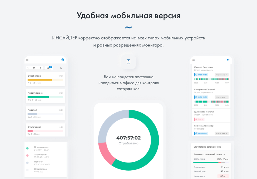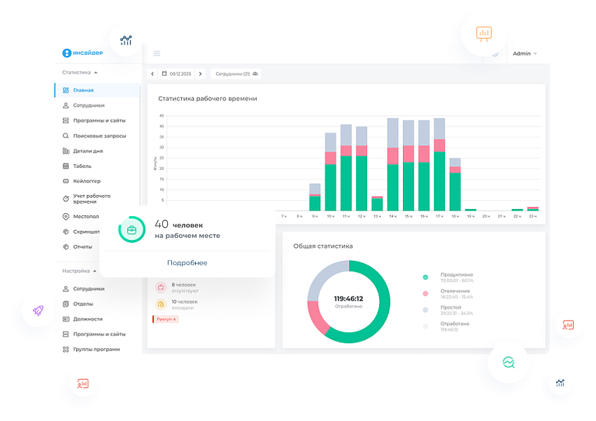 Без контроля продуктивность будет постоянно снижаться, а за ней и эффективность работы. Система мониторинга Инсайдер позволит автоматизировать контроль в компании, повысить информационную безопасность и увеличить эффективность работы.
