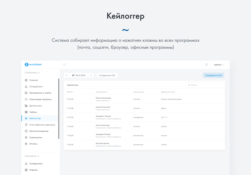 Поможем с настройкой "ИНСАЙДЕР - система мониторинга, контроля и комплексной оценки эффективности работы персонала"