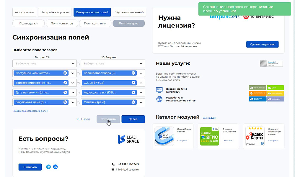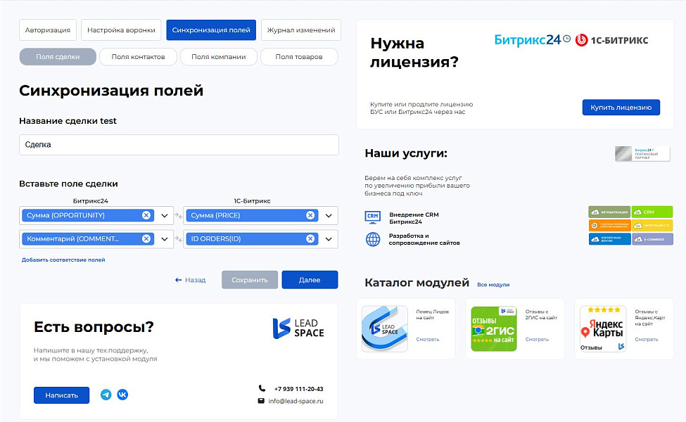 Поможем с настройкой "LeadSpace: Интеграция заказов с сайте 1С-Битрикс в CRM Битрикс24"