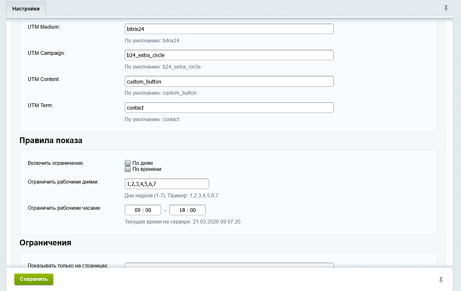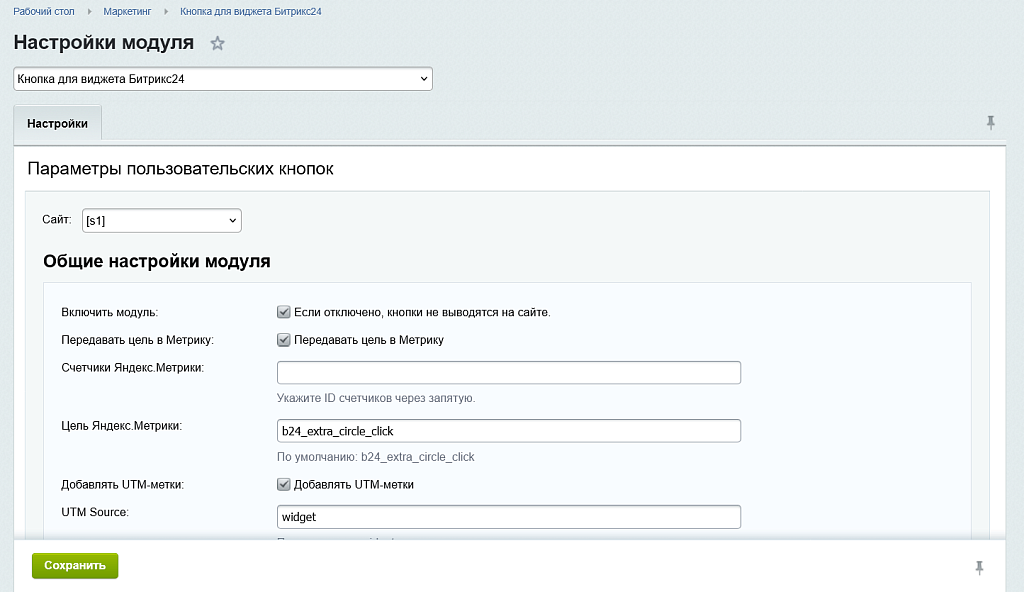 Раздел «Маркетинг → Кнопки для виджета Битрикс24».