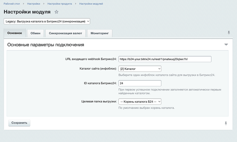 Поможем с настройкой "Legacy: Выгрузка каталога в Битрикс24 (синхронизация)"