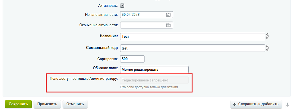 MDSoft: ReadOnly свойство элемента инфоблока, ver. 1.0.0