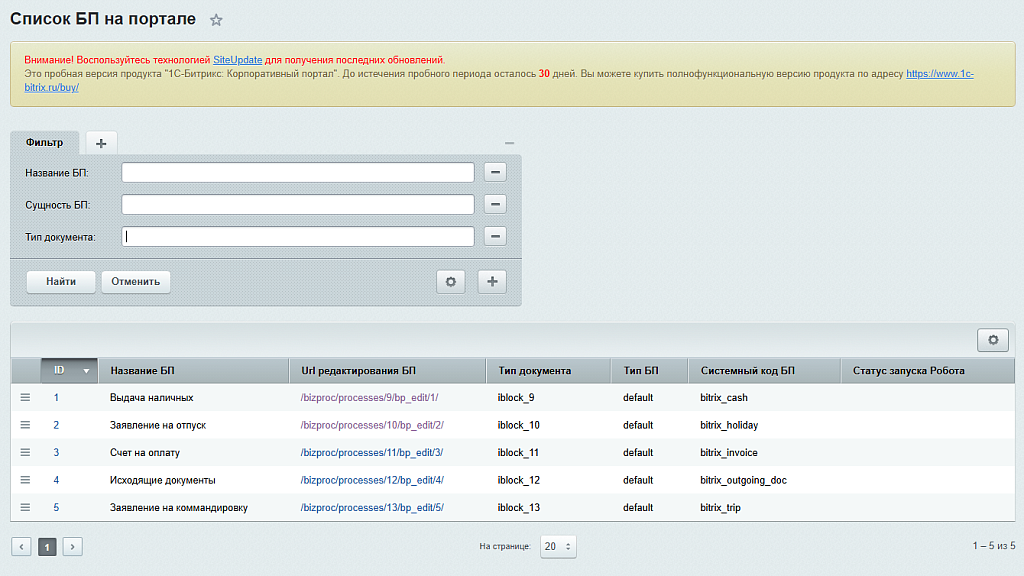 - искать бизнес-процессы по названию