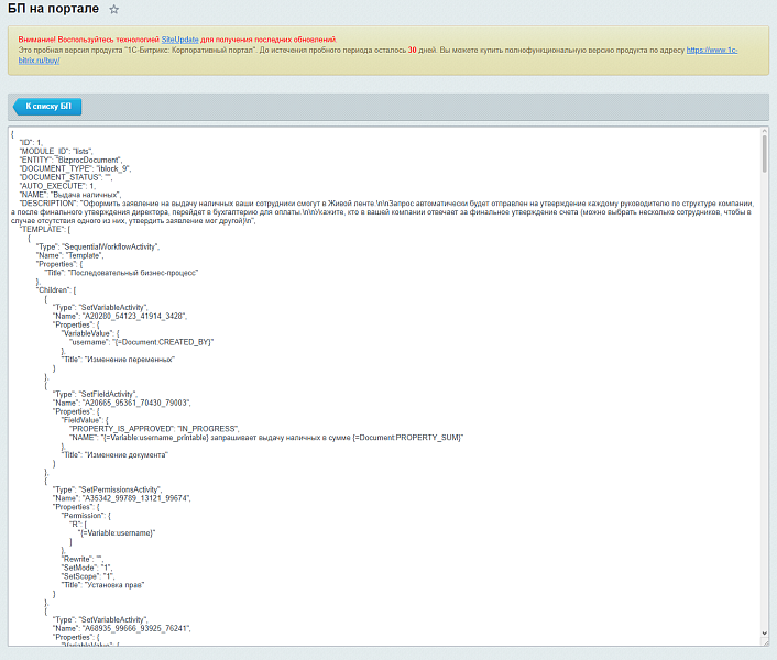 - просматривать бизнес-процессы в формате json