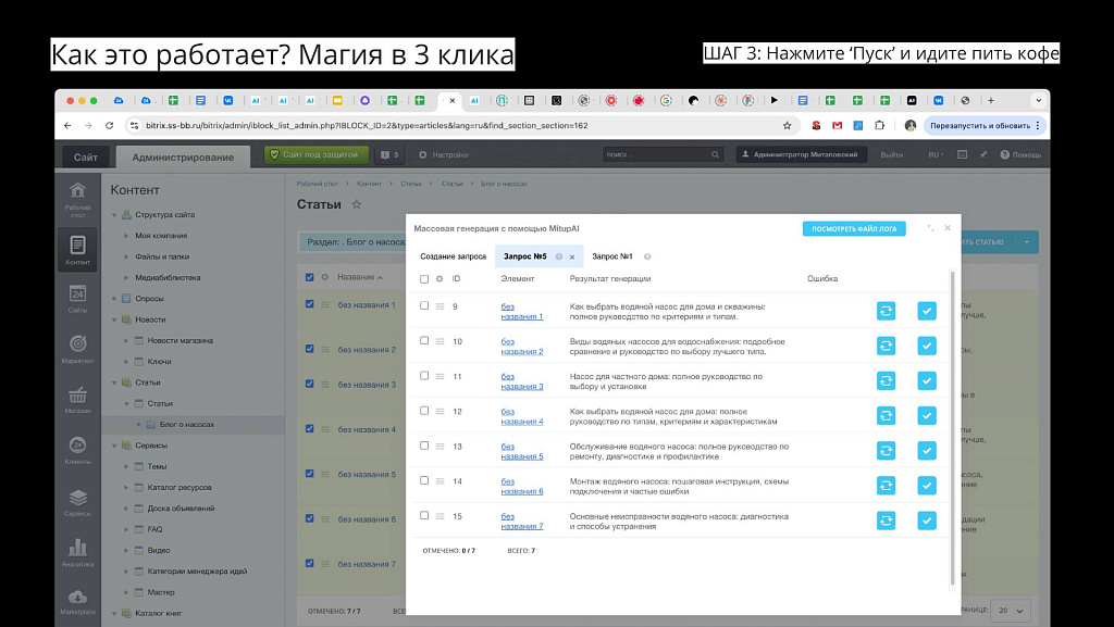 1. Массовая генерация title, description или описания для любых элементов инфоблоков