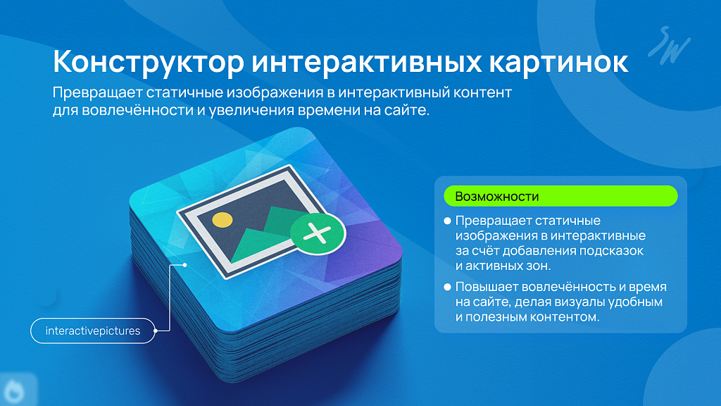 ⭐ Интерактивные картинки - модуль, который делает визуалы живыми и функциональными. На изображениях можно размещать подсказки, ссылки и активные зоны, превращая их в удобный навигационный инструмент. Это повышает вовлечённость пользователей, увеличивает время на сайте и делает контент более интересным.
