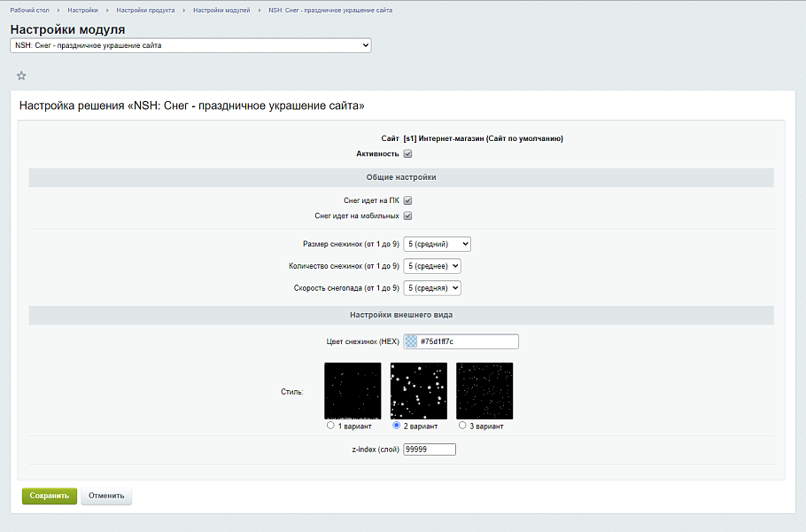 Поможем с настройкой "NSH: Снег - праздничное украшение сайта"