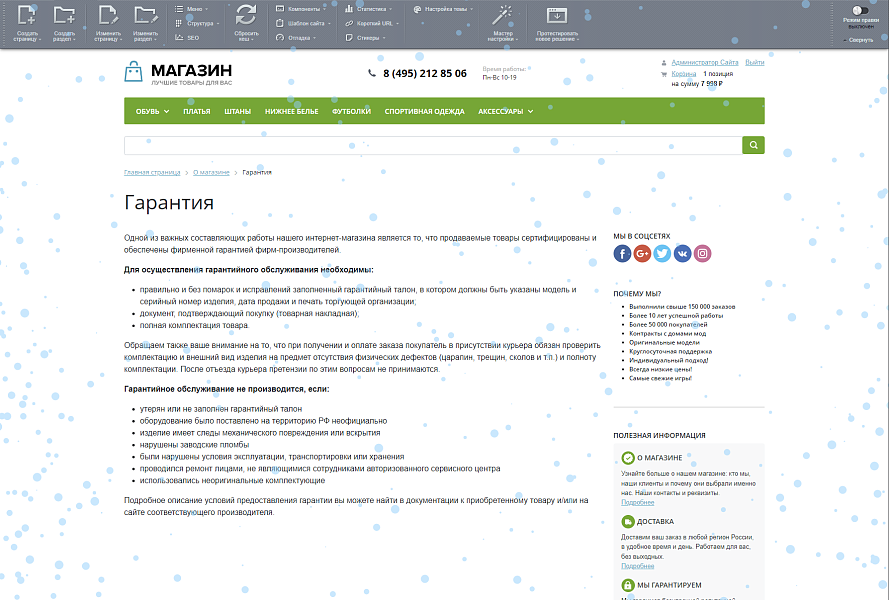 | Подходящие редакции | Первый сайт, Старт, Стандарт, Малый бизнес, Бизнес, Корпоративный портал, Интернет-магазин + CRM |