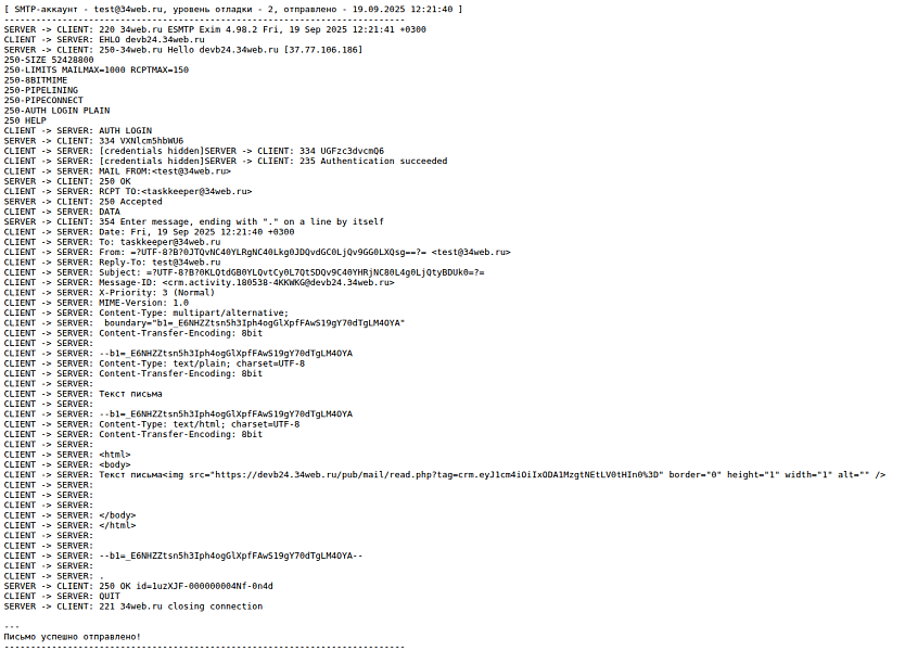 Результат работы отправки писем может логироваться, есть настройка ротации лога по времени и объему файла. В административном разделе сайта есть страница для просмотра логов (отдельный по каждому SMTP-аккаунту) с защитой доступа.