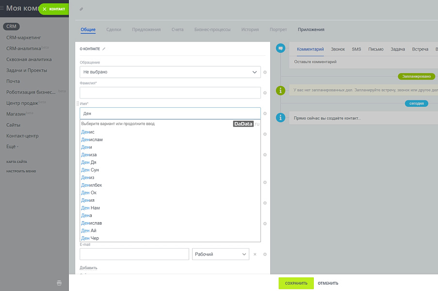 Подключите на страницу Лида / Сделки / Контакта / Компании — скрипты для быстрого ввода ФИО, адресов и реквизитов компаний.