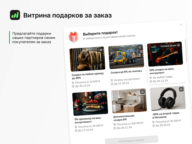 Доводим брошенные заказы до оплаты через ценный для клиента подарок от партнеров ПрайсПорта. Передаем вам клиентов, которые недавно купили товар, близкий к вашему, повышая конверсию.