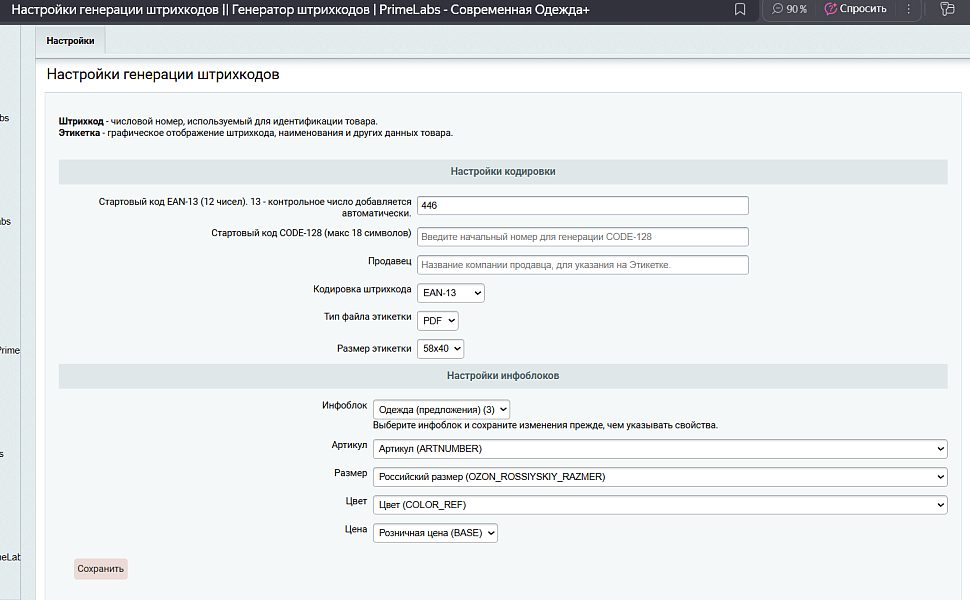 Поможем с настройкой "Генератор штрихкодов (barcode) в EAN-13, CODE-128 | PrimeLabs"