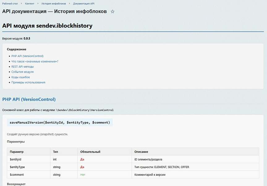 - Расширяемость: События модуля (OnAfterVersionCreate) позволяют интегрировать внешние уведомления и вебхуки.