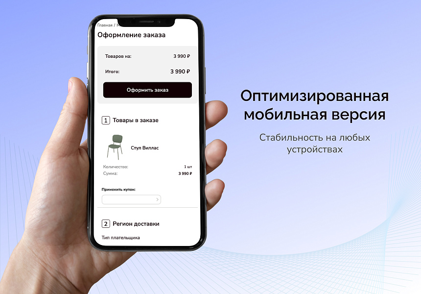 Обеспечьте удобство использования для пользователей мобильных устройств. Уникальный стиль и учёт потребностей мобильного трафика гарантируют, что ничто не помешает клиентам совершить покупку.