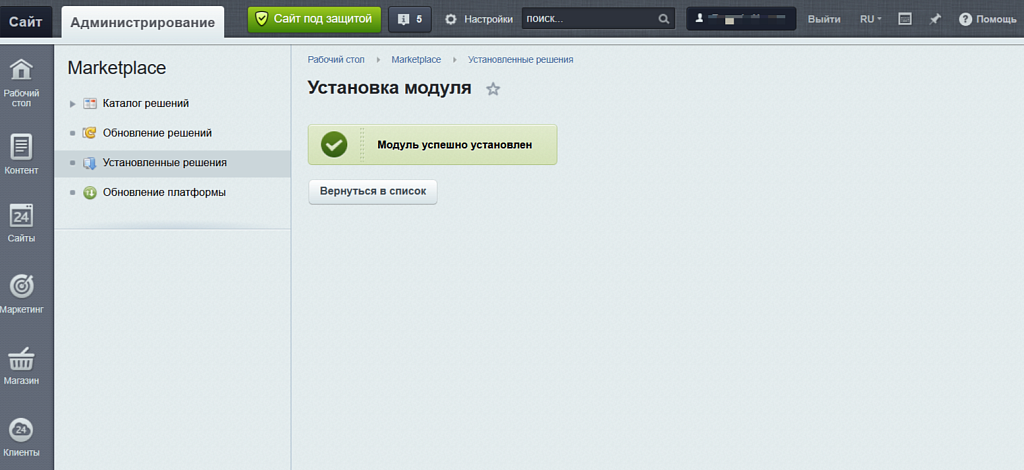 Статус модуля: При удалении модуля Инфоблок не исчезает, так что вы сможете его использовать позже, если это понадобится.