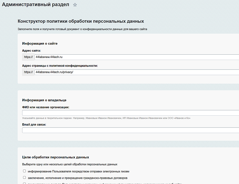 Согласия Сookie настраиваемые по 152 ФЗ + Генератор политики конфиденциальности, ver. 1.0.0