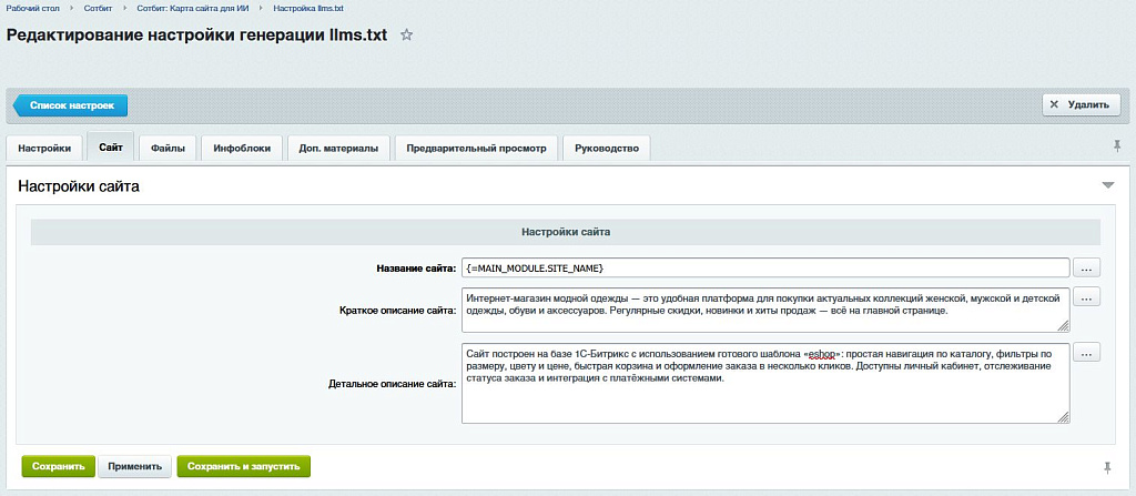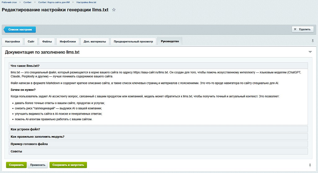 Сотбит: Карта сайта для ИИ – модуль GEO-оптимизации для 1С-Битрикс, который