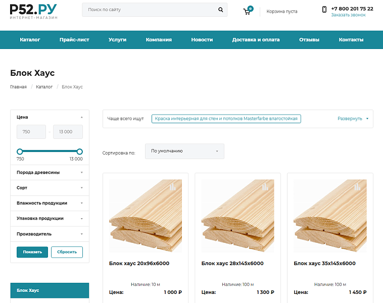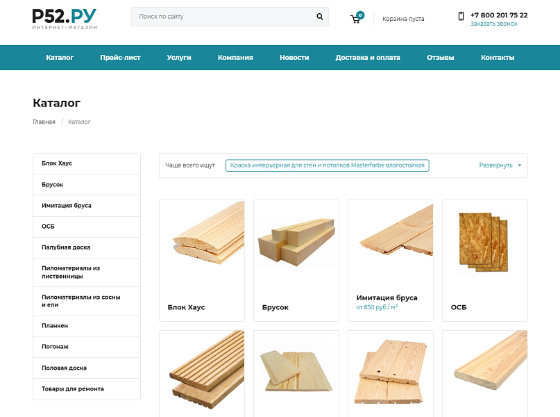 С R52.Wood позволяет создать функциональный онлайн-магазин по продаже строительных материалов.