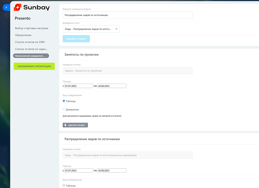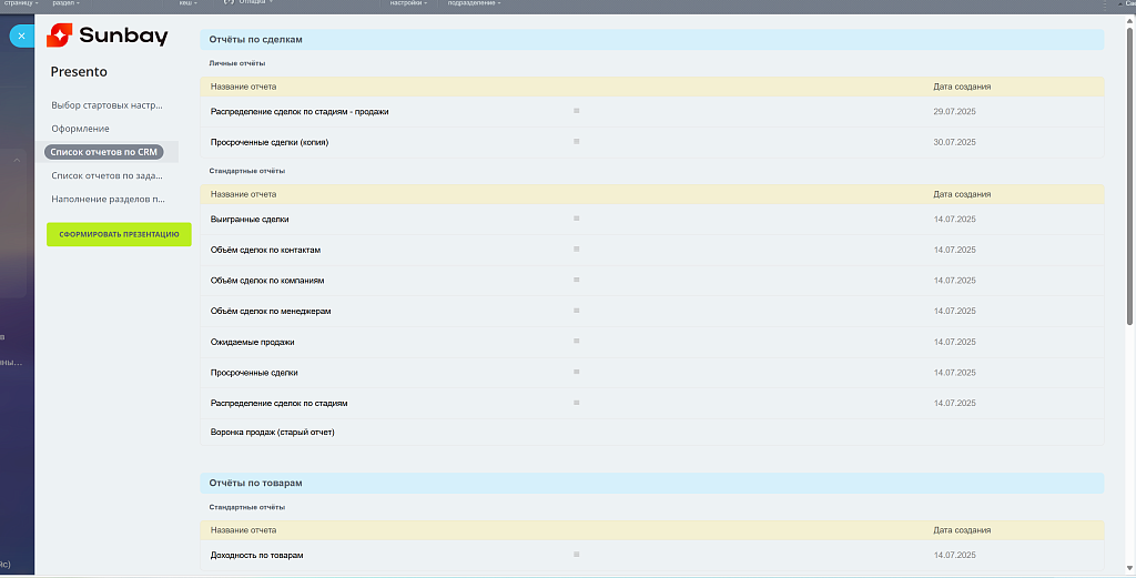 Как это работает?В основе Sunbay Presento — отчёты из конструктора отчётов Битрикс24. Это значит:
