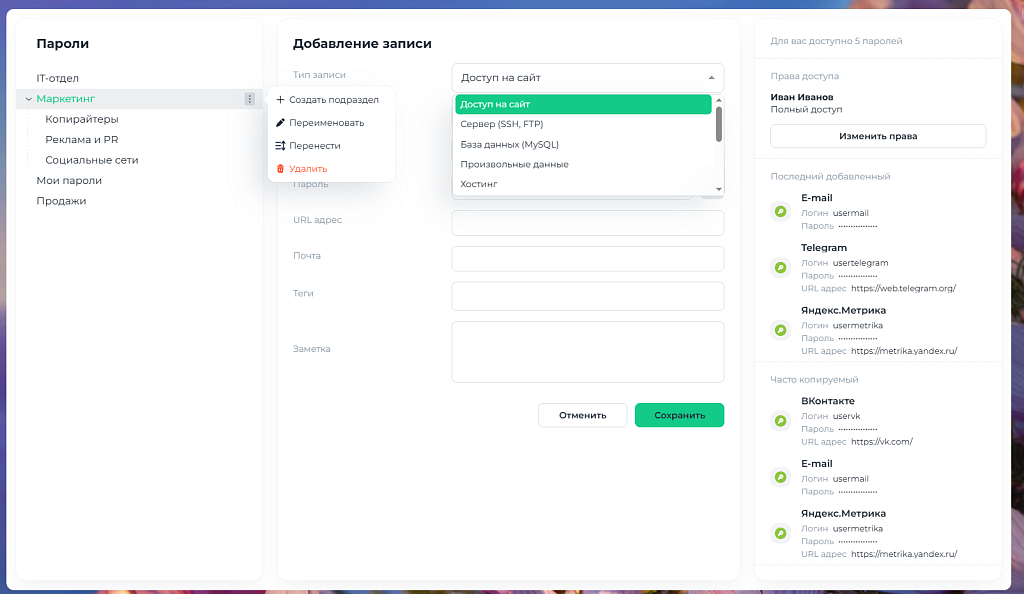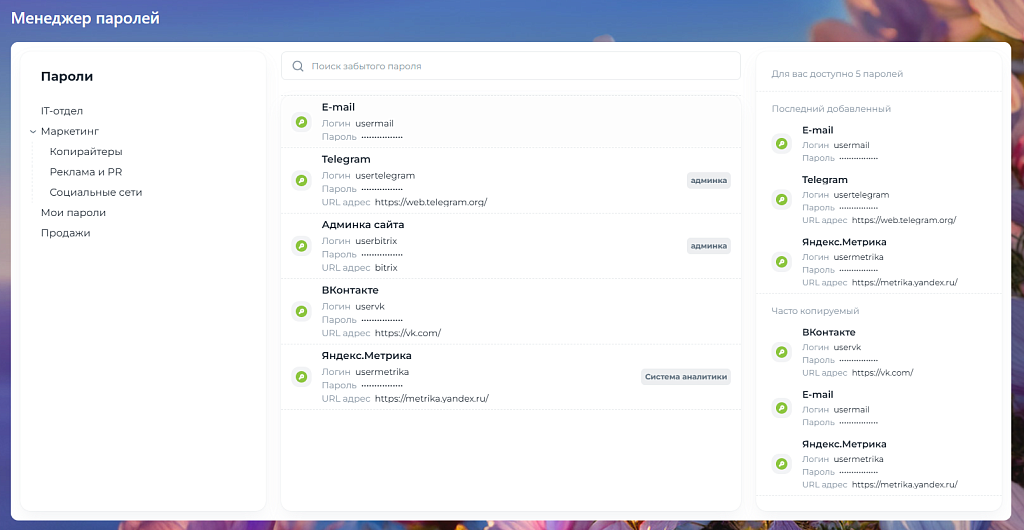 TANAiS.WEB: Парольный менеджер, ver. 1.0.0