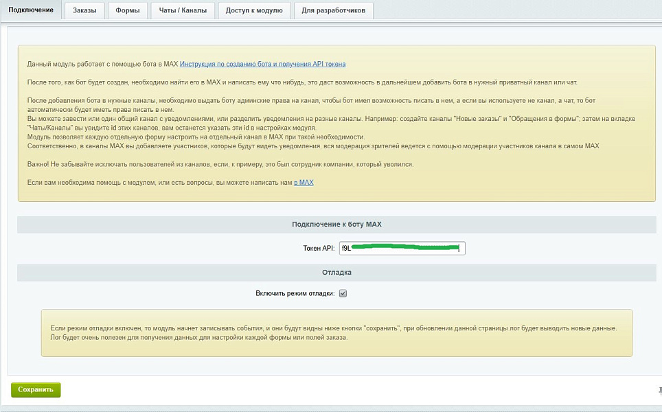 Модуль использует API MAX и предназначен для уведомлений в мессенджер MAX о новых заказах, статусах оплаты, заполнении веб-форм.