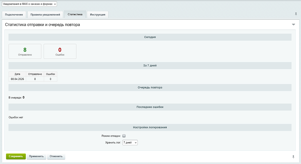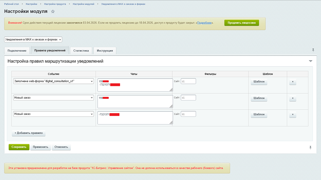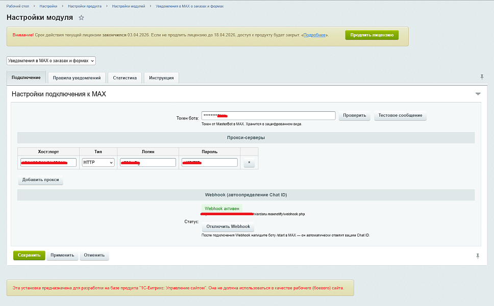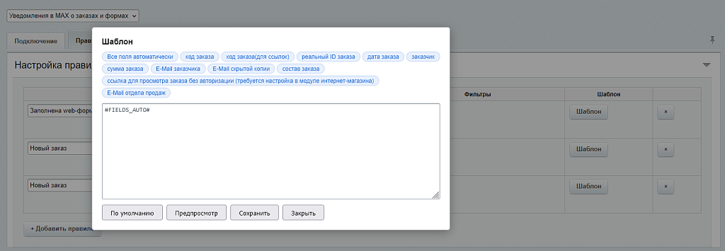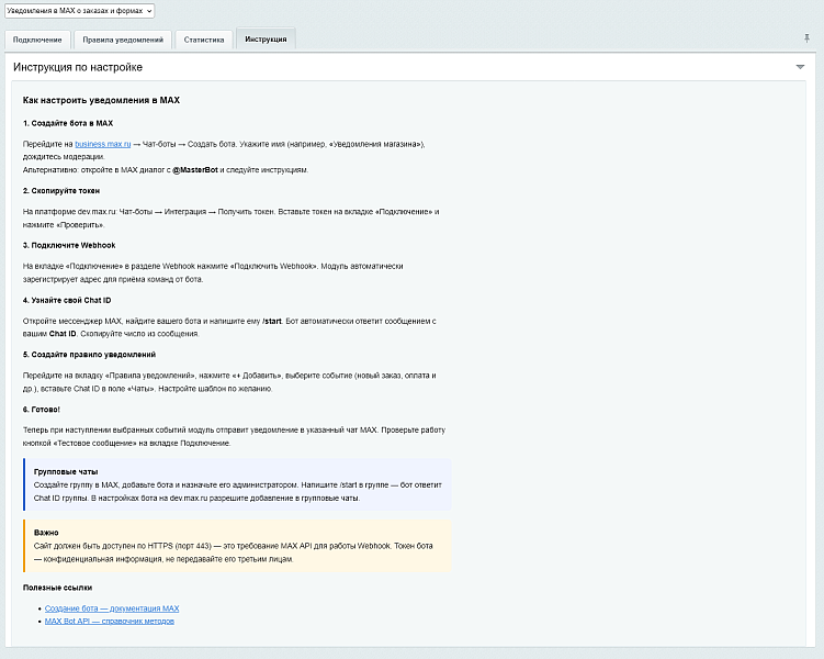 Уведомления в MAX о заказах и формах, ver. 1.6.7