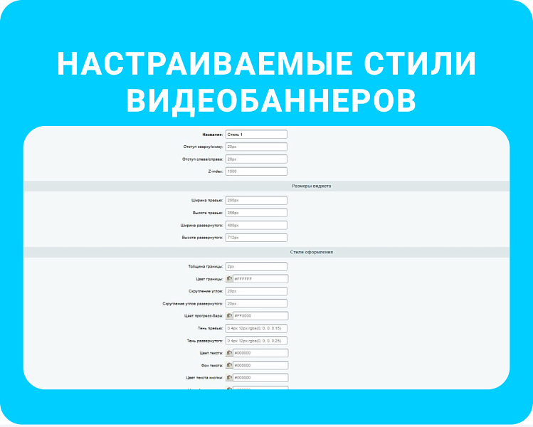 - Привязка к страницам сайта: показ конкретного видеобаннера на выбранных URL/разделах.
