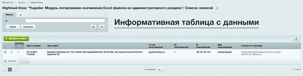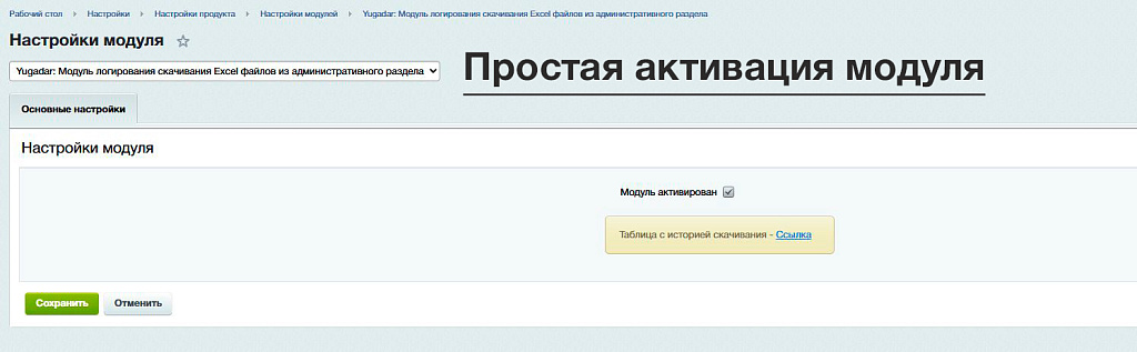 Поможем с настройкой "Yugadar: Логирование экспорта в Excel из административного раздела"
