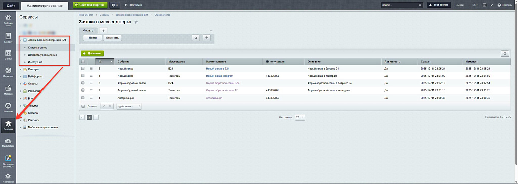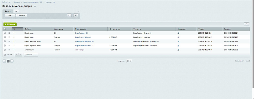 Модуль заявок в мессенджеры для вашего сайта на 1С-Битрикс