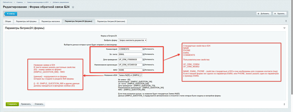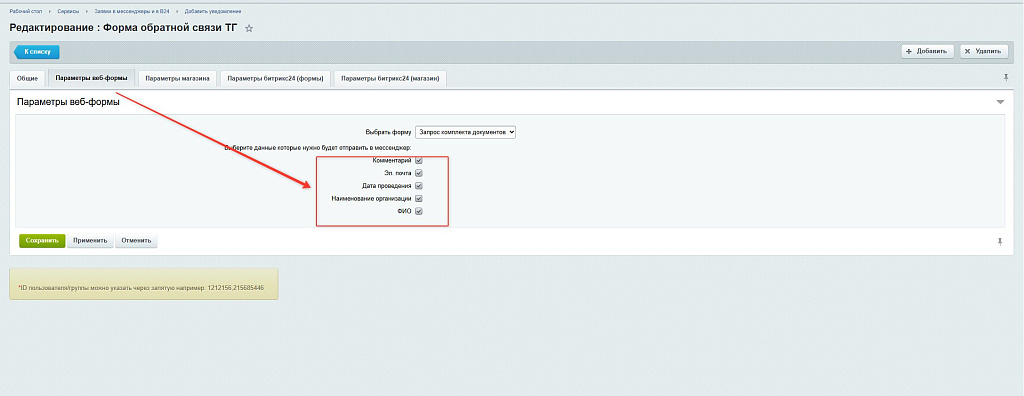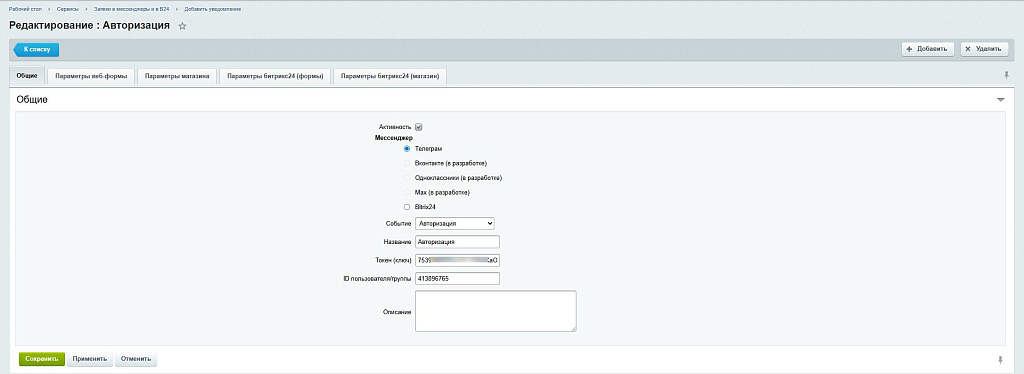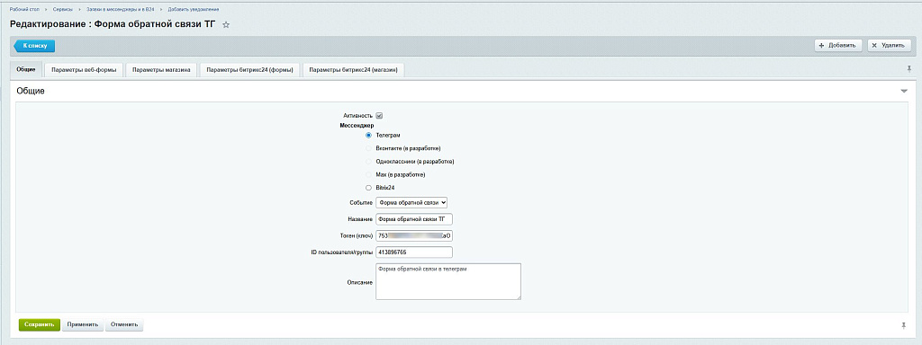 Заявки в мессенджеры и в Б24, ver. 1.0.0